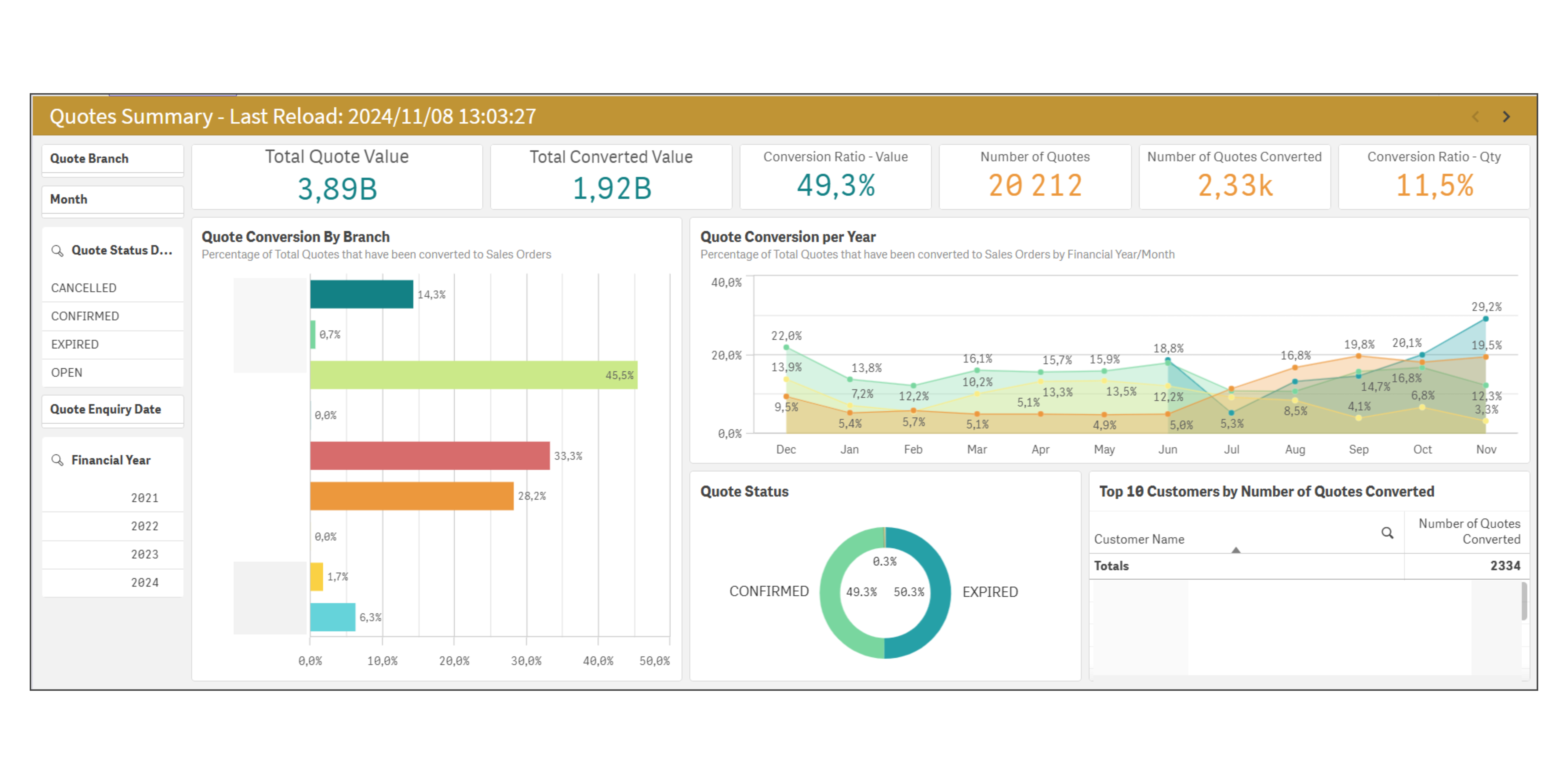 Suite of Dashboards and Daily Reports: Offers real-time insights into sales, quotes, debtors, and stock for informed decision-making.